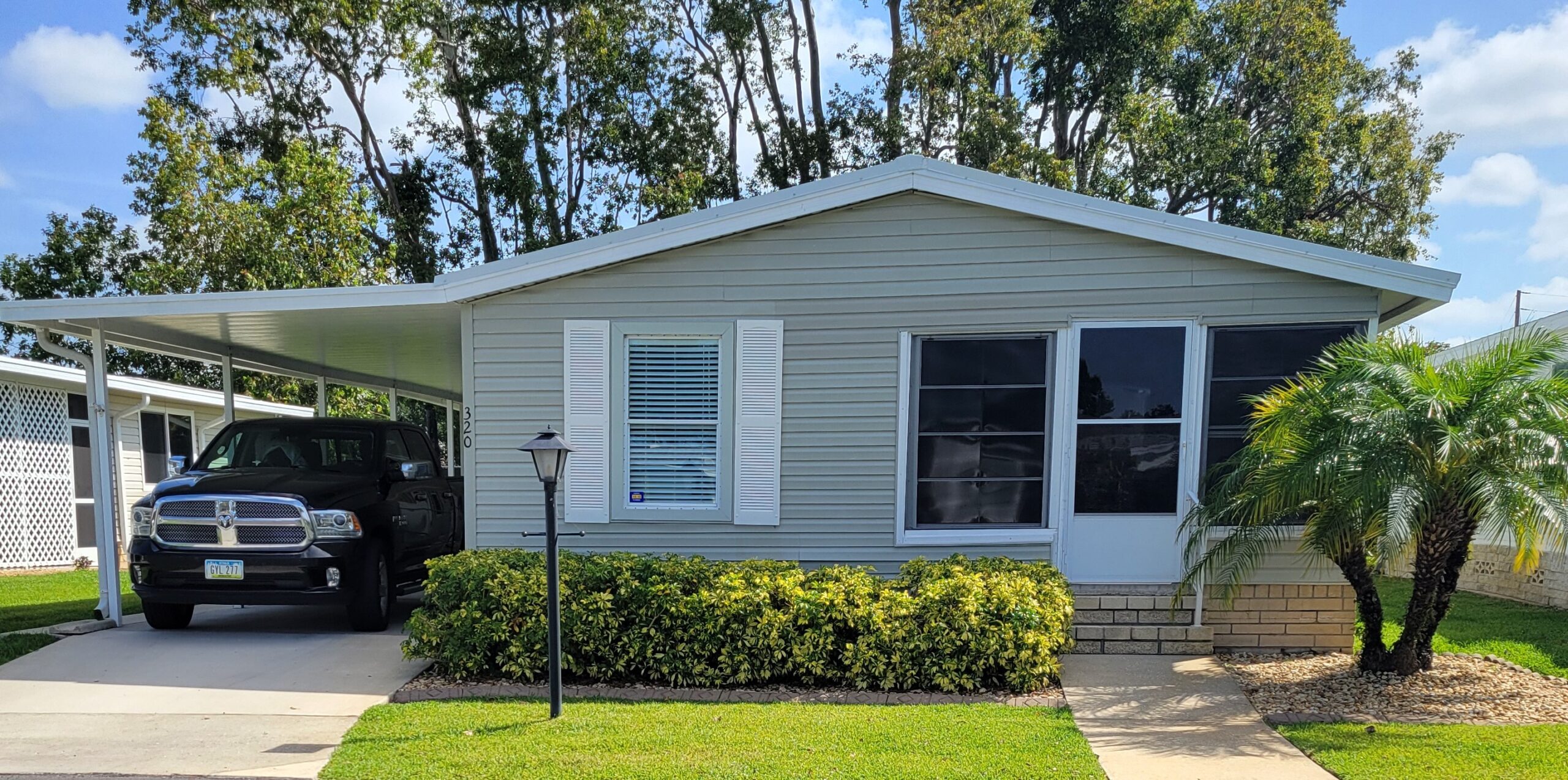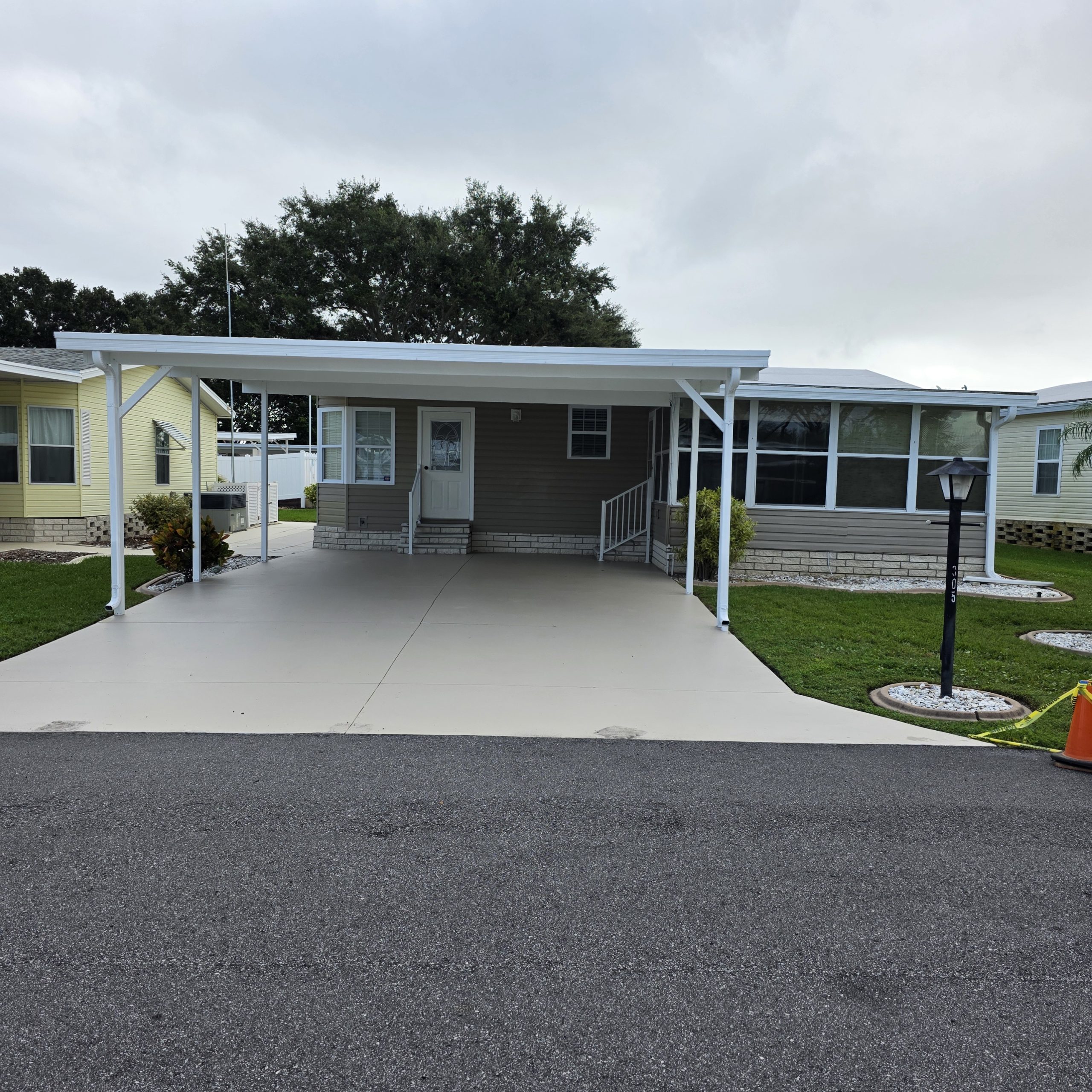 driveway with a carport to keep your car cool from the hot Florida Sun. Located in an active 55+ gated community.